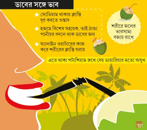 এমন সময়ে দরকার ওষুধ, চিকিৎসকের পরামর্শ। এমন সময়ে পেটকে আরামে রাখতে নিয়ম মেনে খাওয়া-দাওয়া করা, তবে এই সময় প্রতি দিন ডাবের পানি খাওয়ার অভ্যাস করতে পারলে ভাল। গরমের দিনে এ পানি তাপপ্রবাহের বিরুদ্ধে যুদ্ধ করে ও শরীরে তাৎক্ষণিক শক্তি যোগায়। এতে রয়েছে পটাশিয়াম, ম্যাঙ্গানিজ, ভিটামিন সি, ক্যালসিয়াম এবং ডায়াবেটিস ফাইবারের মতো গুরুত্বপূর্ণ পুষ্টিকর উপাদান।- আনন্দবাজার