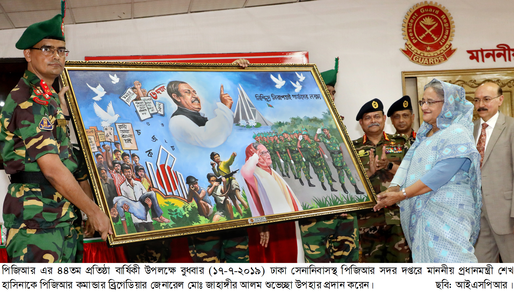 প্রধানমন্ত্রী শেখ হাসিনা পিজিআর সদর দপ্তরে পৌঁছালে রেজিমেন্টের কোয়ার্টার গার্ডে সেনাবাহিনী প্রধান জেনারেল আজিজ আহমেদ এবং পিজিআরের কমান্ডার ব্রিগেডিয়ার জেনারেল মো. জাহাঙ্গীর আলম তাকে অভ্যর্থনা জানান। এরপর একদল চৌকস গার্ড তাকে রাষ্ট্রীয় সালাম প্রদান করেন। তিনি সেখানে একটি গাছের চারা রোপণ করেন।
