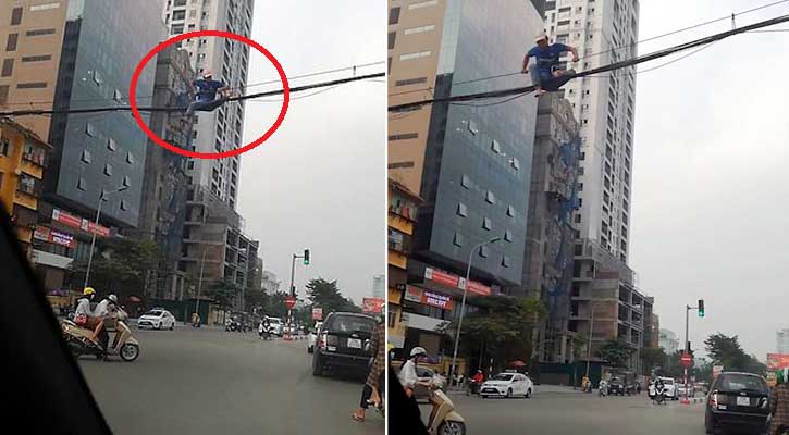 ৭ অক্টোবর ব্রিটিশ সংবাদমাধ্যম ডেইলি মেইল জানায়, গত সপ্তাহে ঘটনাটি ঘটেছে ভিয়েতনামের রাজধানী হ্যানয়ে। অনেকক্ষণ অপেক্ষার পরেও গাড়ির ভিড়ে সড়ক পার হওয়ার সুযোগ না পেয়ে ক্ষেপে যান ওই ব্যক্তি। উঠে পড়েন পাশে থাকা বৈদ্যুতিক পোল বেয়ে। এরপর, একগুচ্ছ তার ধরে বেয়ে বেয়ে সড়ক পার হতে থাকেন তিনি। এমন কাণ্ড দেখে হতভম্ব হয়ে পড়েন নিচে সড়ক দিয়ে চলাচলরত গাড়ির যাত্রীরা। একজন এ ঘটনা ভিডিও করে ছেড়ে দেন সামাজিক যোগাযোগমাধ্যমে। এরপর দ্রুতই ভাইরাল হয়ে পড়ে সেটি।