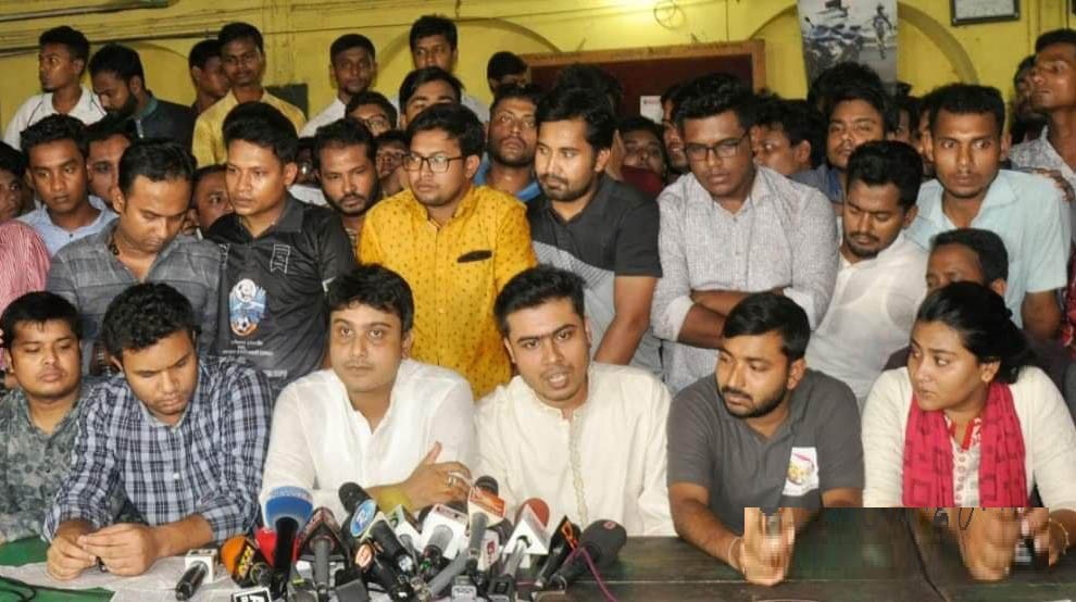 নিউজ ডেস্ক : সদ্য দায়িত্বপ্রাপ্ত ছাত্রলীগের ভারপ্রাপ্ত সভাপতি আল নাহিয়ান খান জয় এবং সাধারণ সম্পাদক লেখক ভট্টাচার্য ঢাকা বিশ্ববিদ্যালয়ের মধুর ক্যান্টিনে রোববার দুপুরে একটি সংবাদ সম্মেলন করেছেন। দায়িত্ব গ্রহণের প্রথম দিনে এই সংবাদ সম্মেলনে তারা প্রধানমন্ত্রীর নির্দেশে ছাত্রলীগের ইমেজ সংকট দূর করতে একত্রে কাজ করার অঙ্গীকার করেন।-দৈনিক আমাদের সময়